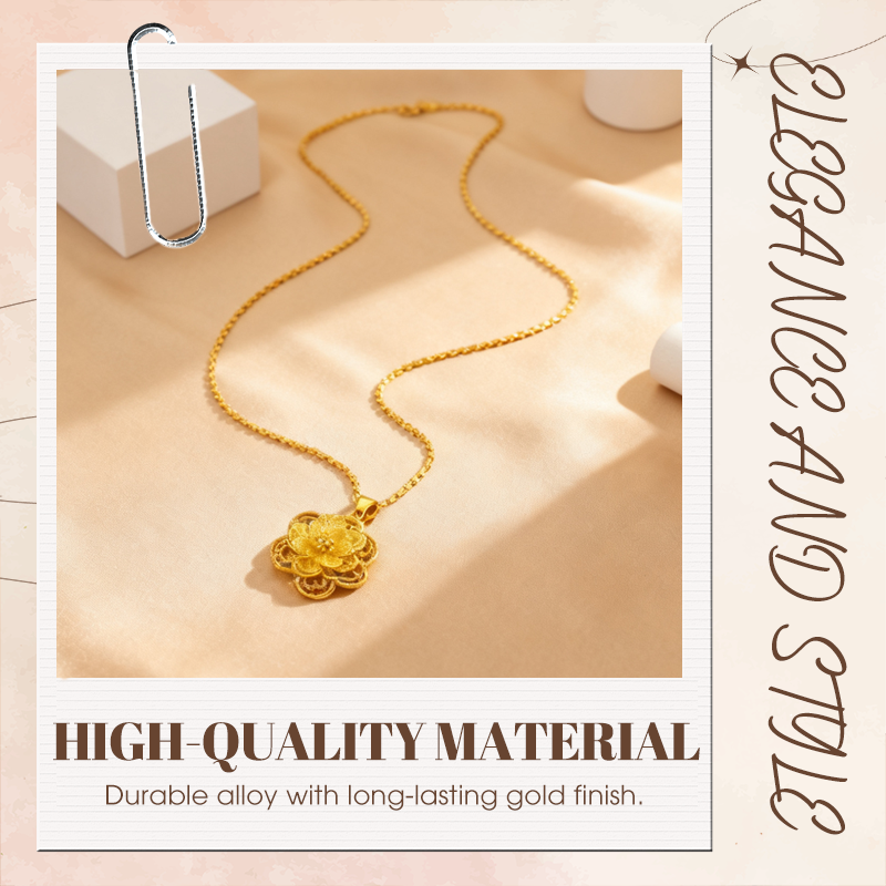 ELEGANT DESIGN: Features a beautifully detailed gold-tone flower pendant with a hollow, intricate design, adding a touch of femininity and sophistication to any outfit.