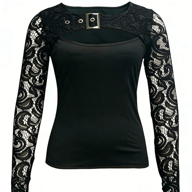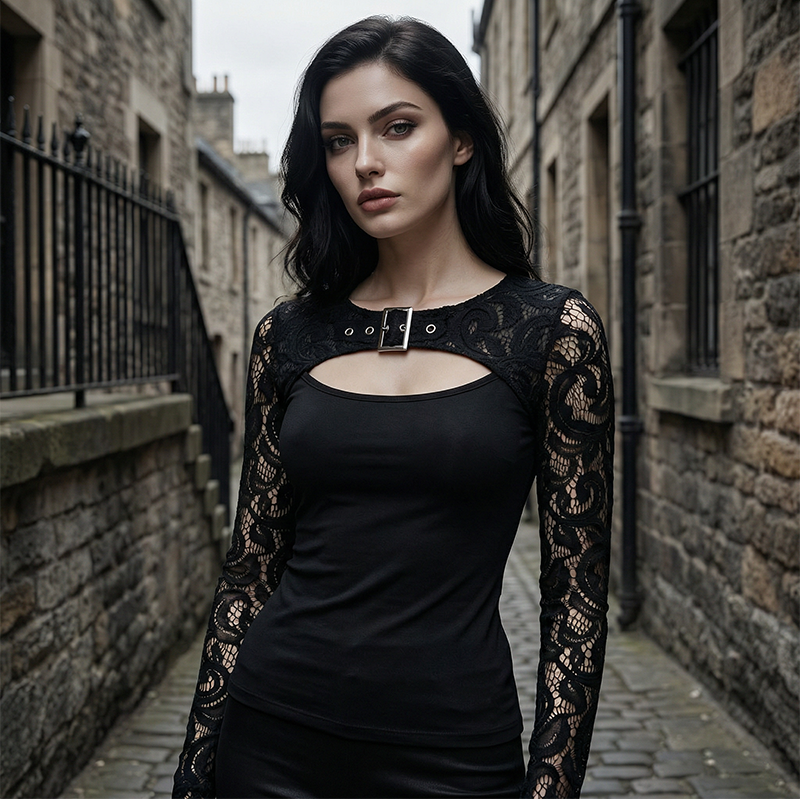 EDLER SCHNALLEN-AKZENT – Der einzigartige Riemen quer über dem Ausschnitt, komplett mit silberfarbener Schnalle und Ösen, verleiht eine kantige, punk-inspirierte Note, die dieses Oberteil zu einem echten Statement für mutige Persönlichkeiten macht.